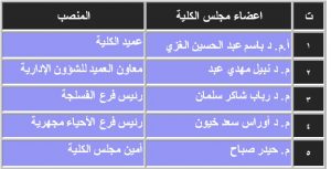 يتكون مجلس ادارة الكلية من الذوات المدرجة اسمائهم في ادناه :